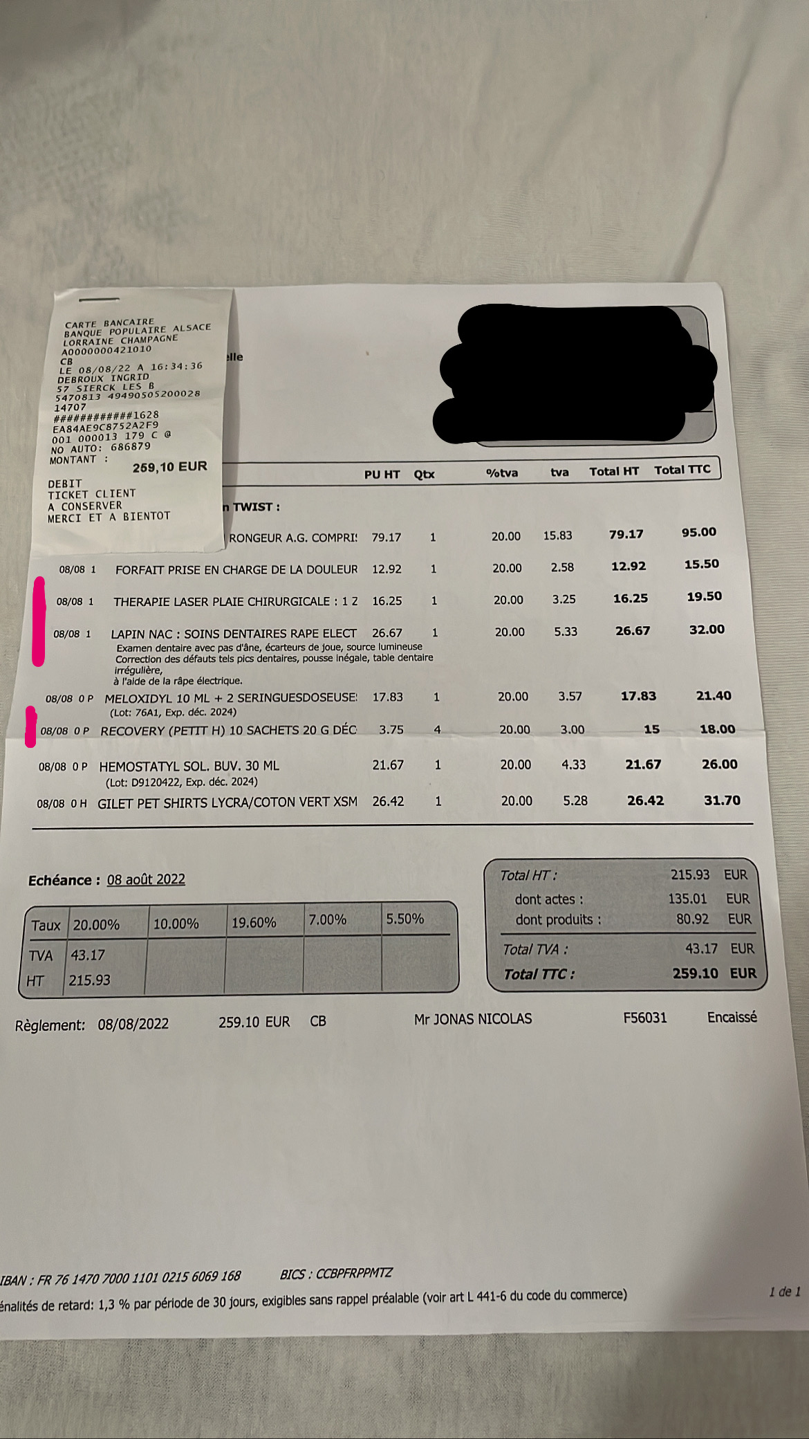 Devis non respecté (castration d’un lapin). 260€ au lieu de 180 ( + 20€ de laser que j’ai dû payer à part). On m’a dit « on a regardé les dents, il y avait un petit pic, alors on l’a limé ! Et on lui a fait une séance de laser pour aider à cicatriser ». Personne ne m’a appeler pour demander mon avis, alors qu’ils savaient que j’étais disponible toute la journée. Des choses de bases (sachets de gavage) n’étaient pas indiqués sur le devis alors qu’ils sont fournis le jour de la castration. Oui, il y a eu une petite complication durant l’opération, donc un médicament homéopathique a 26€ a été rajouté. Sur ça, je n’ai rien à dire. Le jour J, je n’ai ni eu de facture ni de carnet de santé ! Le lendemain (en faisant la séance de laserthérapie), j’ai dû demander à la secrétaire la facture et le carnet de santé. Elle ne s’est ni excusée et les a simplement mis sur le comptoir sans un mot (le carnet de santé n’est même pas rempli). Je trouve qu’il y a du manque de sérieux et de sympathie … on a l’impression d’embêter la secrétaire … Je pense que le but est de faire le plus d’argent possible (et la réputation le dit). Je suis déçue … je n’y irai plus Passez votre chemin, les prix sont chers et manque de sérieux … Ps : comme votre seul argument est qu’il n’y a pas de fichier client au nom de l’utilisateur Google, notre fichier est au nom de mon conjoint. Bien évidemment, j’ai les factures, tickets de caisse, et devis à l’appuie.