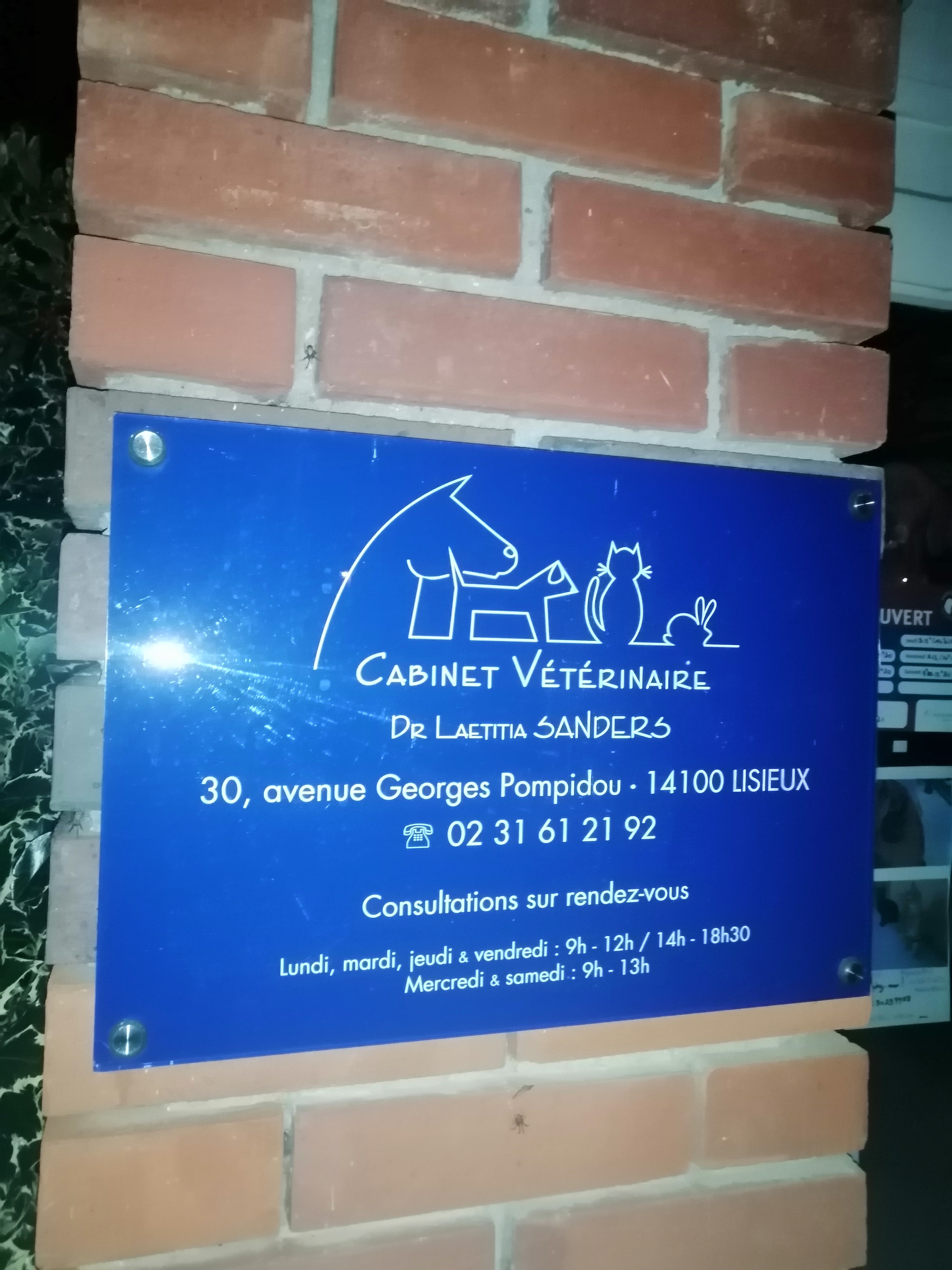 Voici toutes les informations sur le Vétérinaire Sanders Laetitia qui ce trouve au 30 Av. Georges Pompidou, 14100 Lisieux (14). Sur cette fiche vous trouverez les photos, l'adresse, les horaires d'ouverture, le numero de téléphone et les avis clients.Vous pouvez églement rédiger un avis si vous le souhaitez en bas de page.
